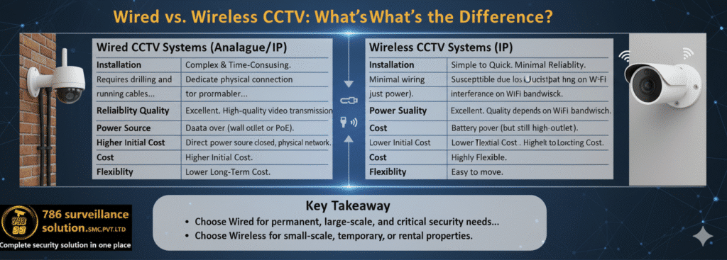 At 786 Surveillance Solution PVT LTD, we help customers in Lahore choose between wired and wireless CCTV camera systems based on their property type and budget.
