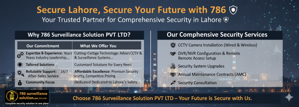 At 786 Surveillance Solution PVT LTD, we don’t just sell security equipment — we build trust, safety, and confidence across Lahore. From CCTV camera prices in Lahore Hall Road to premium brands like Hikvision and Dahua, we bring the market to your doorstep.